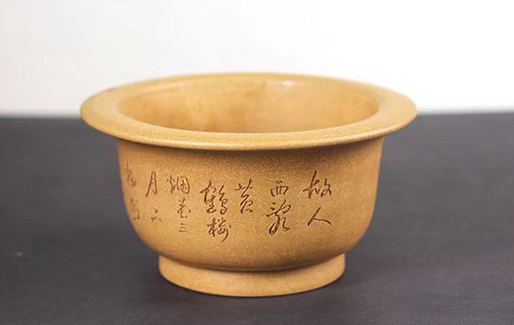 坚持黄龙山原矿紫砂原料\古法炼制\传统全手工成型\专业制作传统仿古紫砂花盆