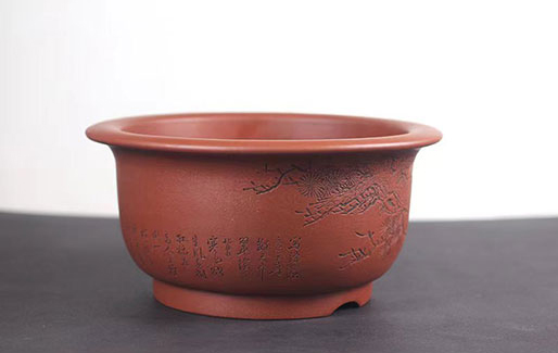 坚持黄龙山原矿紫砂原料\古法炼制\传统全手工成型\专业制作传统仿古紫砂花盆