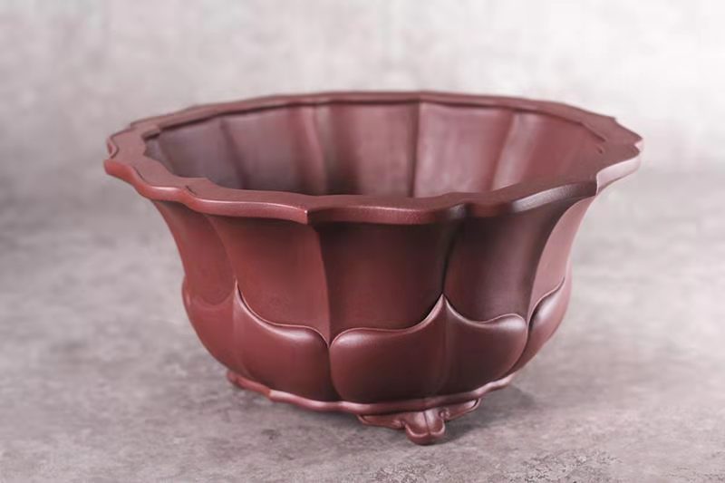 坚持黄龙山原矿紫砂原料\古法炼制\传统全手工成型\专业制作传统仿古紫砂花盆